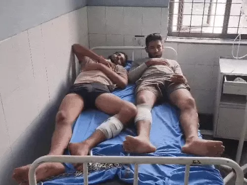 गुरुग्राम में पुलिस की गोली लगने से घायल आरोपी। इनमें से एक को दाएं पैर में तो दूसरे को बाएं पैर में घुटनों से नीचे गोली लगी है।