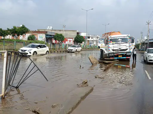 जींद में दिल्ली-पटियाला नेशनल हाईवे पर बारिश के बाद हुए गड्ढों में राख से भरा ट्रक फंस गया। गहरे गड्ढे में नीचे से ट्रक का सारा हिस्सा क्षतिग्रस्त हो गया। नाला की तरफ टेढ़ा होने के कारण ड्राइवर को भी चोट आई है।