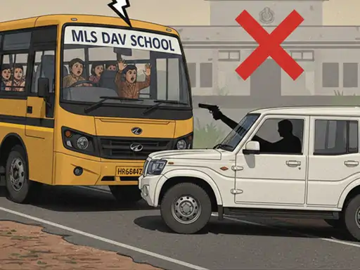 नारनौल में स्कूल बस को रोकर बदमाशों ने तानी पिस्टल:ड्राइवर को धमकी- इस रूट पर न आए; घटना से डरे बच्चों को घर पहुंचाया