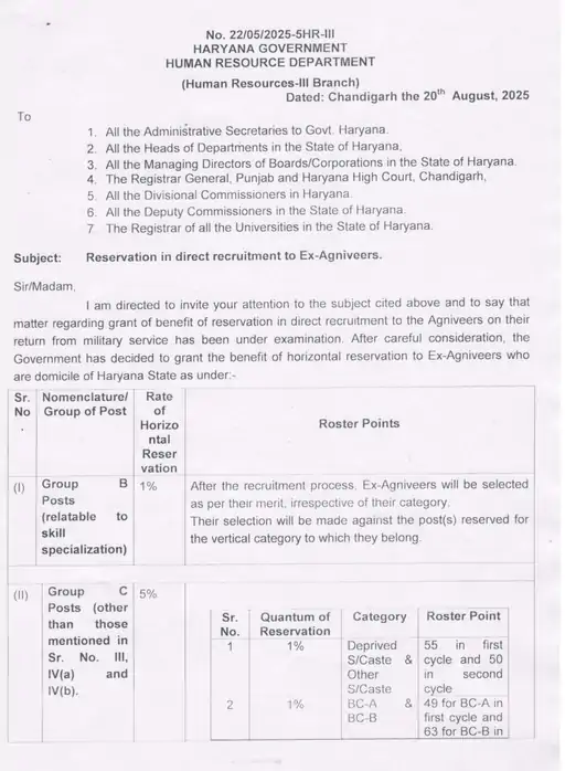 हरियाणा में अग्निवीरों को सरकारी भर्ती में आरक्षण