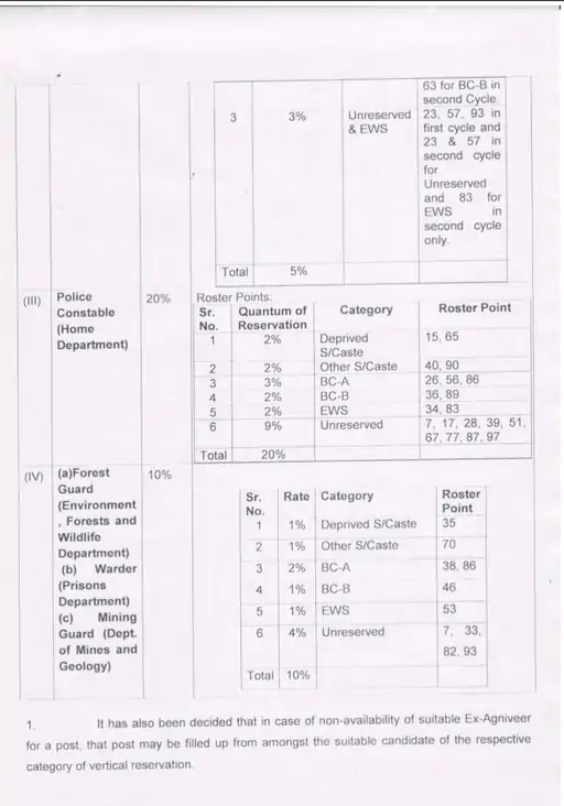 अगर किसी पद के लिए उपयुक्त भूतपूर्व अग्निवीर उपलब्ध नहीं होता, तो वह पद वर्टिकल रिजर्वेशन की संबंधित श्रेणी से भरा जाएगा।