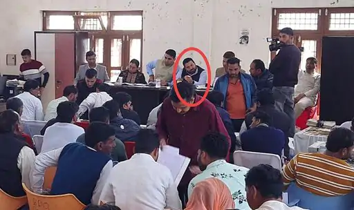 यह फोटो 18 फरवरी 2025 की है, जिस वक्त ACB की रेड हुई तो तहसीलदार चुनावी ड्यूटी से जुड़ी मीटिंग कर रहा था, लेकिन भनक लगते ही मीटिंग बीच में छोड़ फरार हो गया। – फाइल फोटो