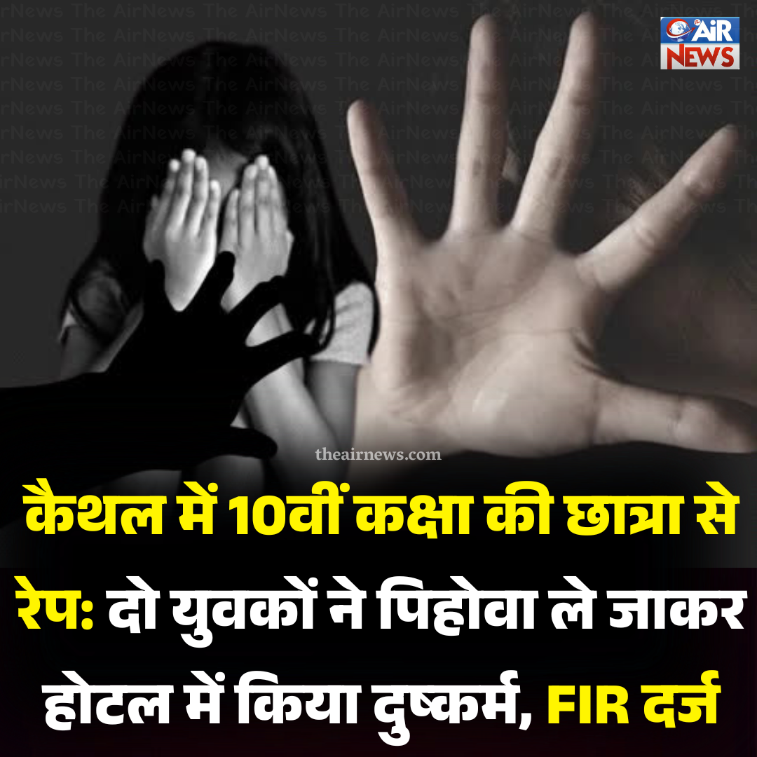 July 3, 202538 Views 1 min read कैथल में 10वीं कक्षा की छात्रा से रेप: दो युवकों ने पिहोवा ले जाकर होटल में किया दुष्कर्म, FIR दर्ज